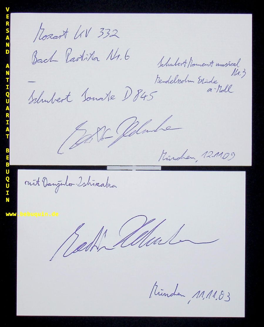HELMCHEN, Martin (Pianist): 2 eigenhändig signierte und datierte Autogrammkarte mit teils umfänglicher eigenhändiger Programmbeschreibung. München, 2003 + 2009. 8 x 12,5 cm. 2 Karteikarte. Martin Helmchen (* 1982 in Berlin) ist ein deutscher Pianist. (Wikipedia)
