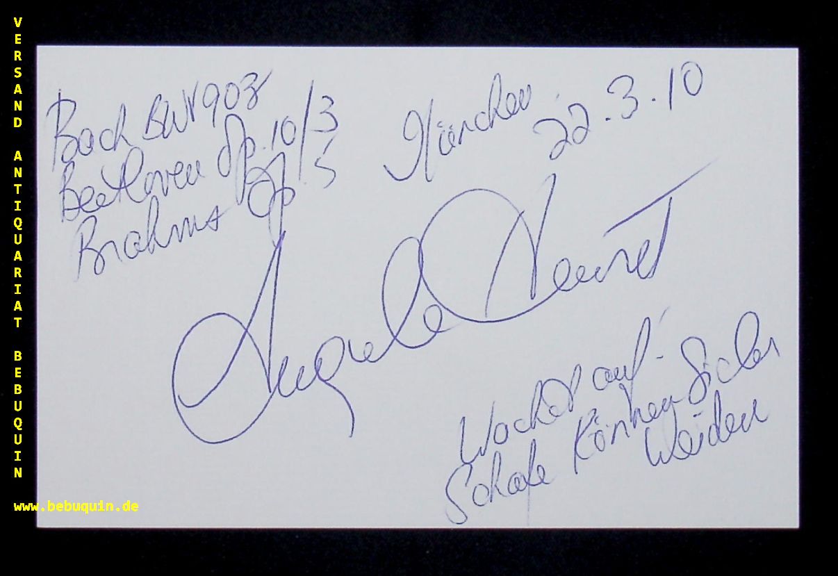 HEWITT, Angela (Pianistin): eigenhändig signierte und datierte Autogrammkarte. München (Herkulessaal), 22.3.2010. 8 x 12,5 cm. Karteikarte. Angela Hewitt (* 26. Juli 1958) ist eine kanadische Pianistin. (Wikipedia)