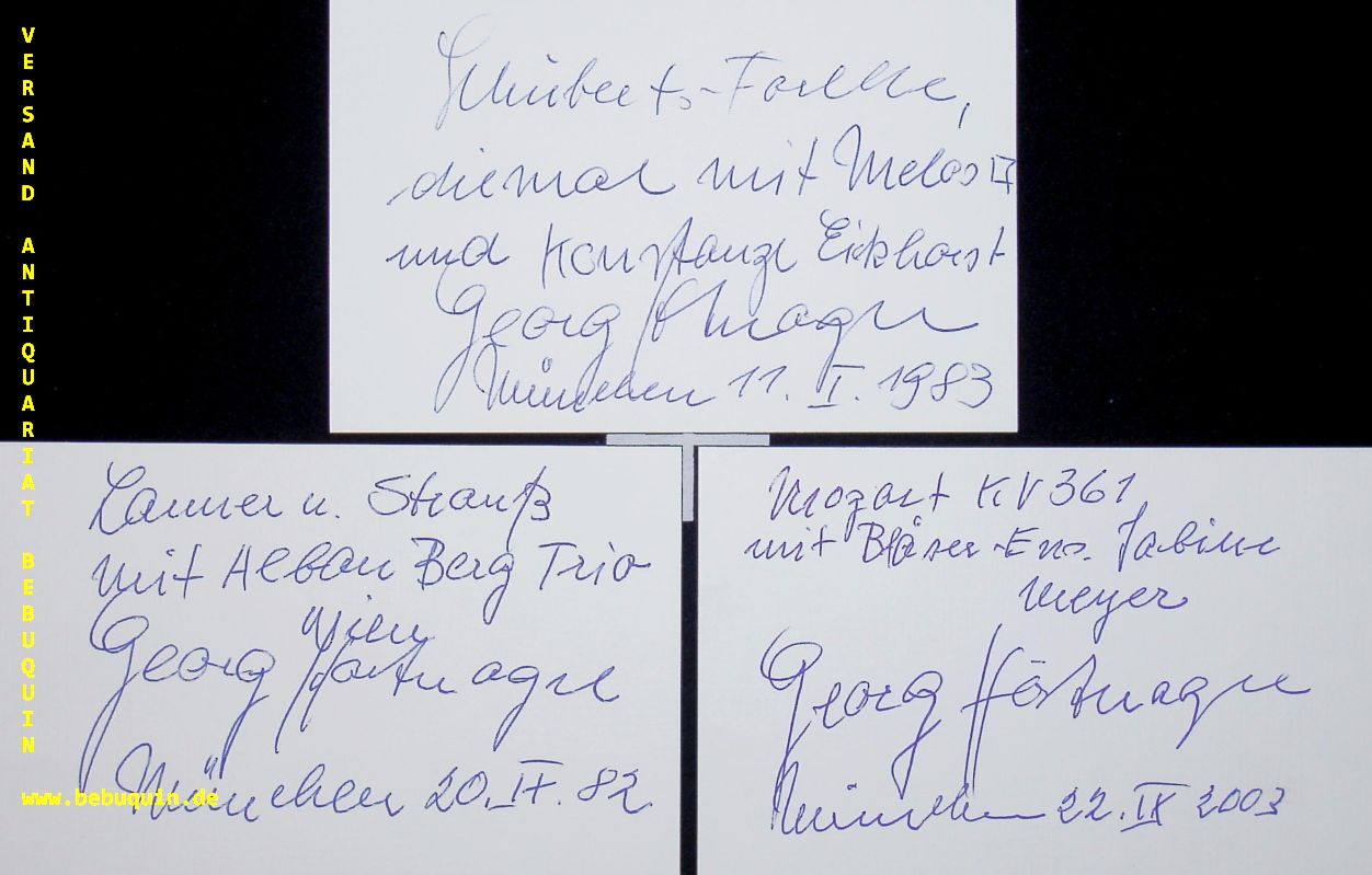 HÖRTNAGEL, Georg (Bassist): 3 eigenhändig signierte und datierte Autogrammkarten. München (Philharmonie), 1982 – 2003. 8 x 12,5 cm. 3 Karteikarten.
