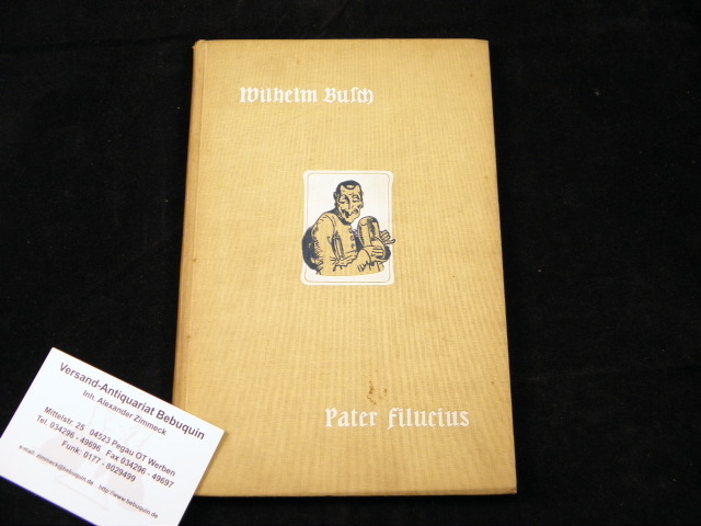 BUSCH, Wilhelm: Pater Filucius. Allegorishes Zeitbild. Mit den Beigaben „Von mir über mich“ und „Der Nöckergreis“. 74. Tsd. München (Bassermann), 1910. 40 S. mit zahlr. Zeichnungen des Verfassers + einem Titelportrait. ill. OLn. kaum angeschmutzt, gutes Ex.