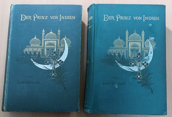 MAY.– WALLACE, Lewis: Der Prinz von Indien. oder Der Fall von Konstantinopel. D.v. Albert Witte. 2 Bände. Freiburg (Fehsenfeld), 1894. 526 (2), 572 S. ill. OLn. etwas schiefgelesen, ein Rücken geblichen.. EA mit einer Seite Verlagswerbung für Karl May (Reise-Romane).