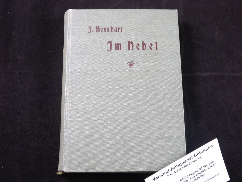 BOSSHART, Jakob: Im Nebel. Erzählungen aus den Schweizer Bergen. Leipzig (Haessel), 1898. 403 S. OLn. Ex libris. Seltene EA des Erstlingswerks WG 1.