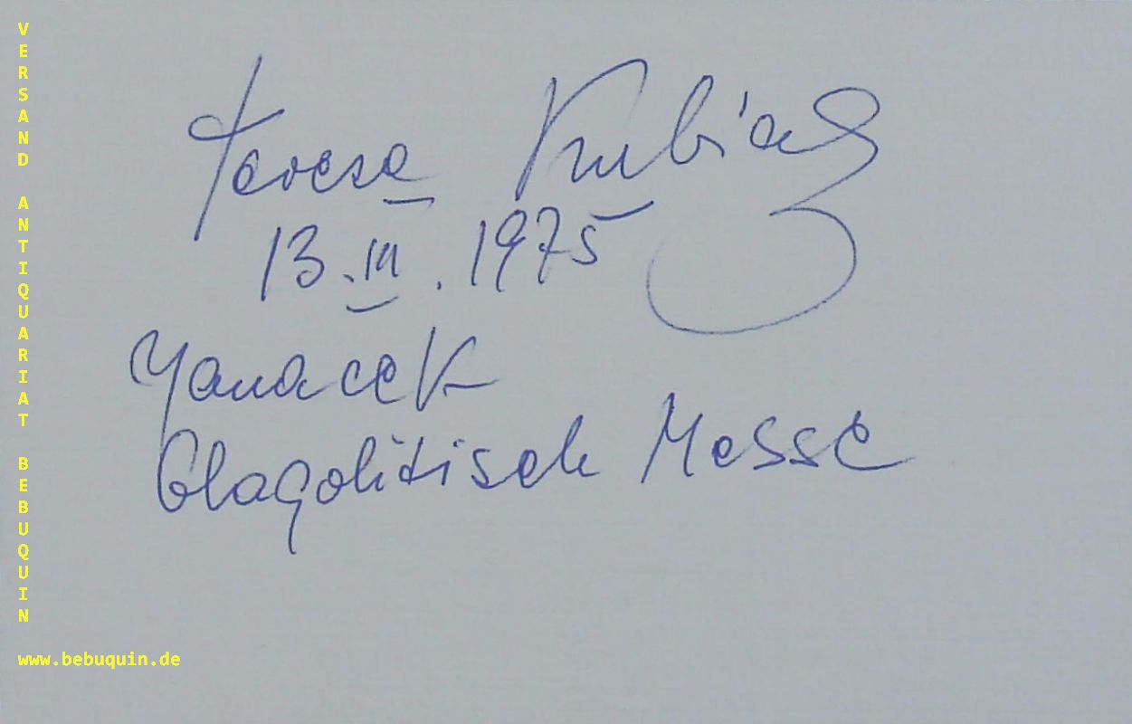 KUBIAK, Teresa (Sopran): eigenhändig signierte und datierte Autogrammkarte. München, 13.3.1975. 8 x 12,5 cm. Karteikarte. Teresa Kubiak (born 26 December 1937) is a Polish operatic soprano. (Wikipedia)