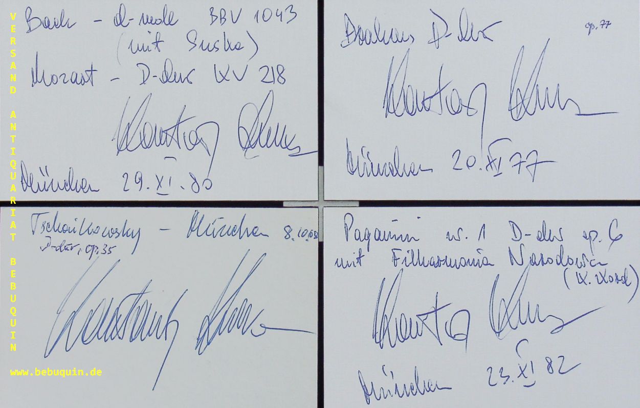 KULKA, Konstanty (Violinist): 10 eigenhändig signierte und datierts Autogrammkarten. München (Kongresssaal), 1967 – 1987. 8 x 12,5 cm. 10 Karteikarten. Konstanty Andrzej Kulka (* 5. März 1947 in Danzig) ist ein polnischer Geiger. (Wikipedia)