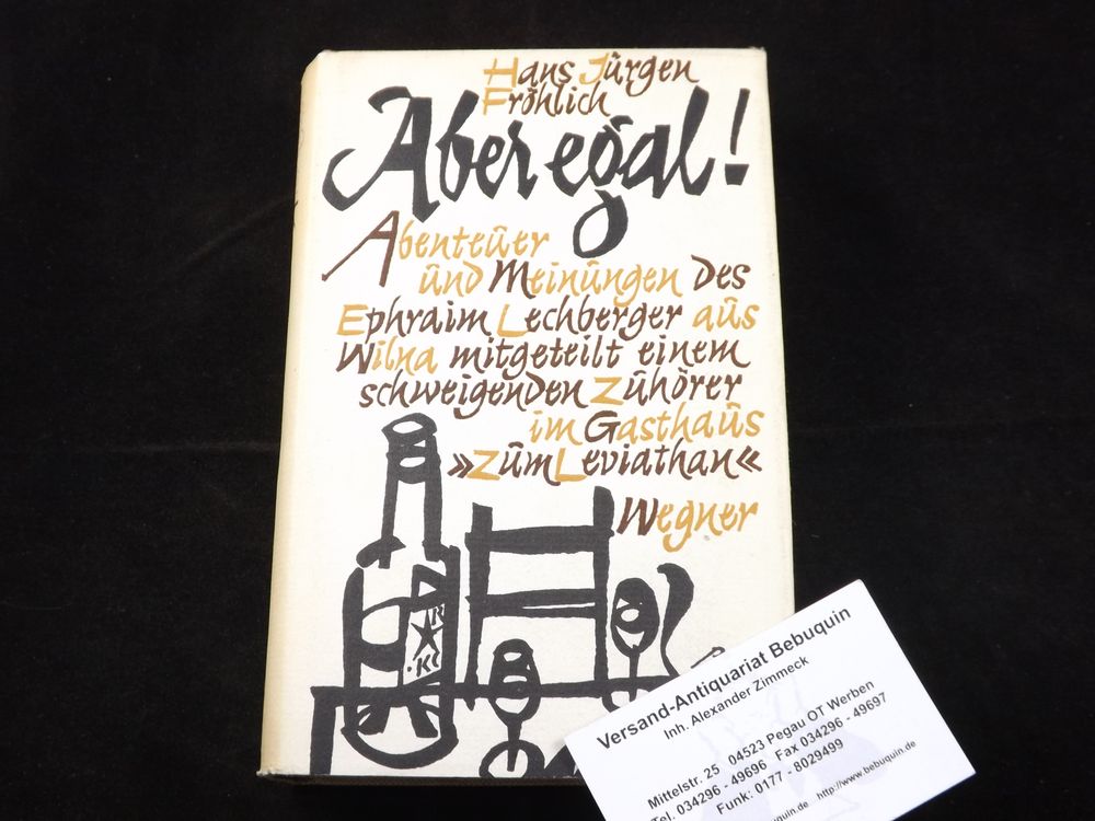 FRÖHLICH, Hans Jürgen: Aber egal! Abenteuer und Meinungen des Ephraim Lechberger aus Wilna mitgeteilt einem schweigenden Zuhörer im Gasthaus „Zum Leviathan“. Hamburg (Wegner), 1963. 299 (5) S. OLn. mit OUmschl. gutes Ex. EA der ersten selbständigen Veröffentlichung.