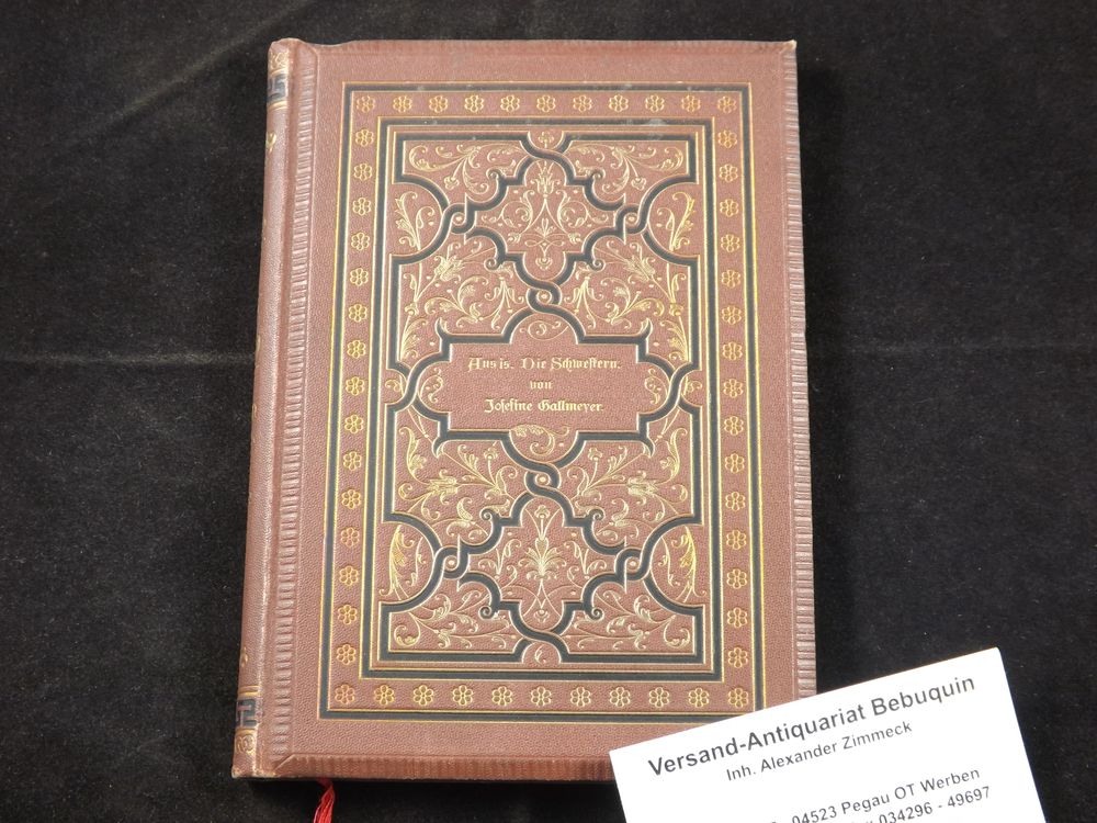 GALLMEYER, Josefine: Aus is! – Die Schwestern. Zwei kleine Erzählungen. Wien (Rosner), 1882. kl. 8°. 6 Bl., 159 S. reich verziertes OLn. schönes kleines Ex libris auf Innendeckel, feines Ex. EA des Erstlingswerks mit einer ganzseitigen, eigenhändigen, voll signierten und datierten Widmung der Verfasserin an Ludwig Anzengruber.