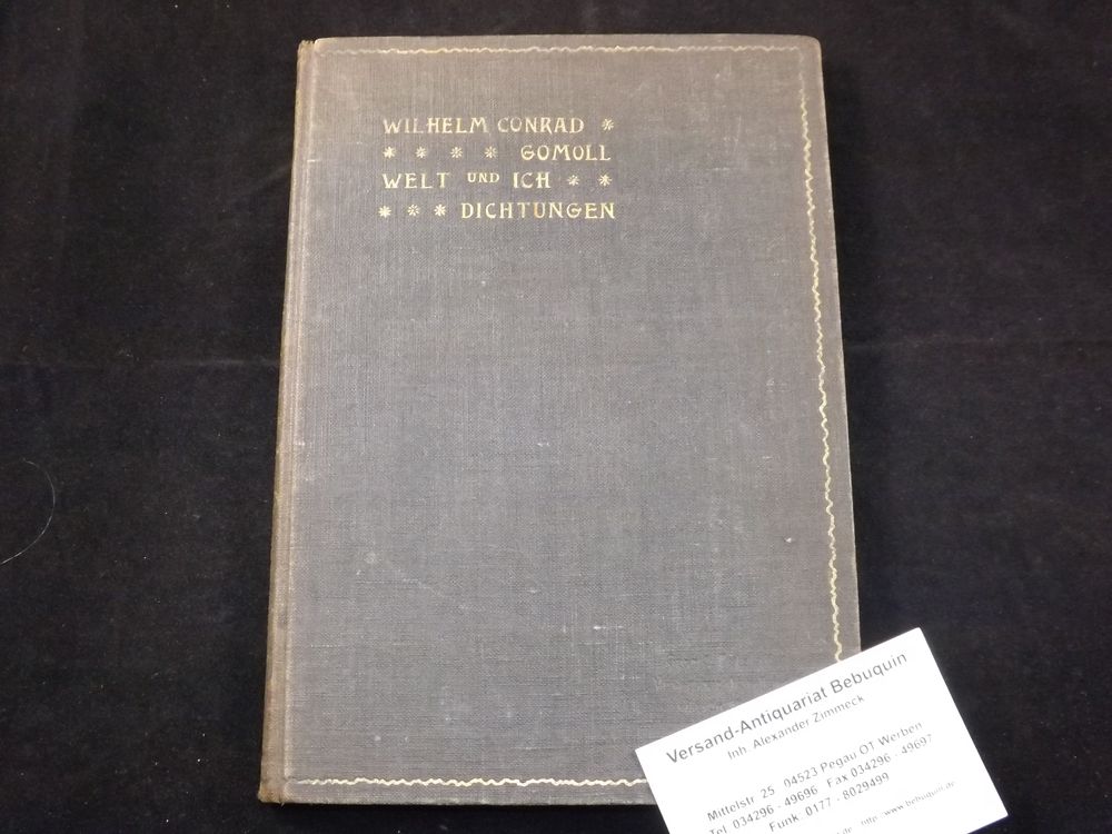 GOMOLL, Wilhelm Conrad: Welt und Ich. Dichtungen. Berlin (Tetzlaff), 1903. Gr. 8°. 102 S. OLn. mit Goldprägung. gutes Ex. EA des Erstlingswerks mit eigenhändiger und datierter Verfasserwidmung auf Titelseite.