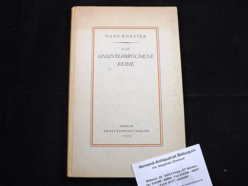 KOESTER, Hans: Die ununterbrochene Reihe. Berlin (Rowohlt), 1920. Gr. 8°. 50 S. OPb. Einband leicht gebräunt. Nr. 154 von 600 Ex. der EA des Erstlings Raabe 163.1.