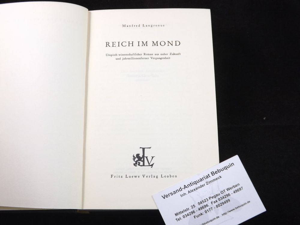 LANGRENUS, Manfred: (d.i. Friedrich Hecht) Reich im Mond. Utopisch-wissenschaftlicher Roman aus naher Zukunft und jahrmillionenferner Vergangenheit. Leoben (Löwe), 1951. 545 (1) S. ill. OLn. fliegender Vorsatz fehlt. EA des Erstlings des österreichischen Uniprofessors. Alpers 640.