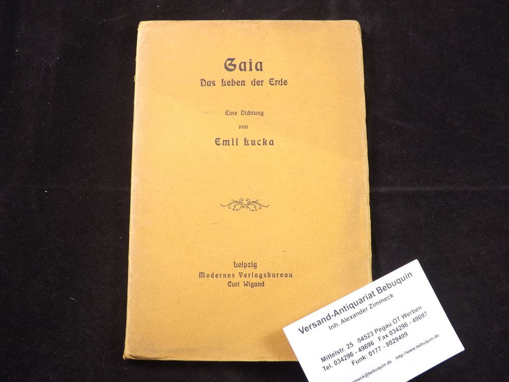 LUCKA, Emil: Gaia. Das Leben der Erde. Eine Dichtung. Leipzig (Wigand), 1903. 112 S. mit Noten. OKart. leicht bestaubt. EA des Erstlingswerks WG² 1. Emil Lucka (* 11. Mai 1877 in Wien; † 15. Dezember 1941 ebenda) war ein österreichischer Schriftsteller. (Wikipedia)