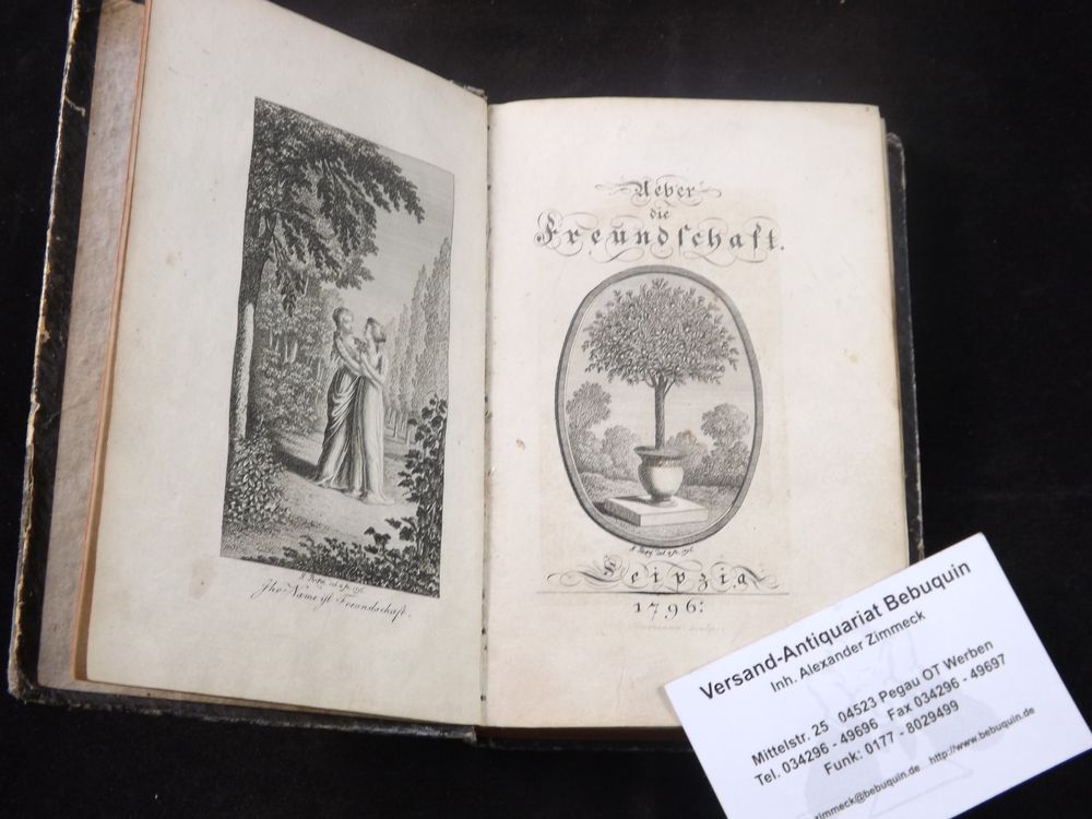 (NATTER, Johann Joseph:) Ueber die Freundschaft. Leipzig, 1796. kl.8°. 301 S. mit gestochenem Frontispiz und gest. Titel von J. Penzel. Pb. der Zeit. Einband beschabt, WaV, gutes Ex, seltene EA der ersten Veröffentlichung; Erbauungsschrift und Zeugnis des romantischen Freundschaftskultes des Predigers und Erziehers J. J. Natter (1767-1831). Holzmann / Bohatta IV, 6854; Kosch XI, 58.