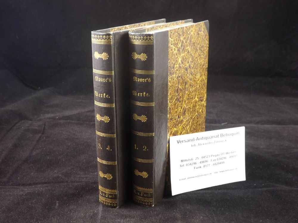 OELCKERS, Theodor: (Übers.) Thomas Moore’s poetische Werke. 4 Bände (in 2). Leipzig, (Tauchnitz), 1839. 238, 230, 211, 221 S. mit gestochenem Titelportrait von Carl August Schwerdgeburth. HLdr. der Zeit mit goldgeprägtem Rücken. feines Ex. EA des Erstlings von Oelckers.