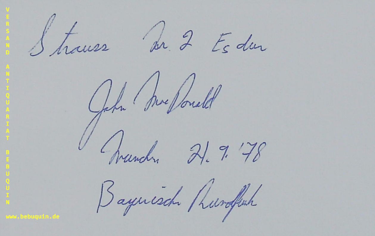 MACDONALD, John (Hornist): eigenhändig signierte und datierte Autogrammkarte. München (Philharmonie), 21.9.1978. 8 x 12,5 cm. Karteikarte. John Roy MacDonald ist ein Musiker, der Waldhorn spielt und mehrere große Wettbewerbe gewonnen hat. Er wurde am 13. Juli 1948 in Gimli, Manitoba, Kanada geboren. Seine Familie zog drei Jahre nach seiner Geburt nach Ottawa. (Wikipedia).