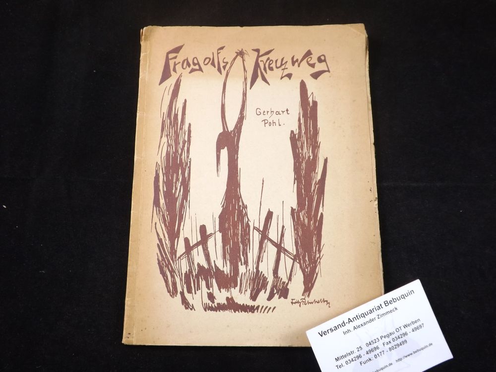 POHL, Gerhard: Fragolfs Kreuzweg. Ein Jugendjahr. Novelle. Berlin (Gotschalk), 1922. Gr. 8°. 38 S. ill. OKart. von Fritz Petschelt. Kanten gebräunt und bestoßen, teils unsauber aufgeschnitten. EA des Erstlings WG² 1 mit überklebter Verlagsangabe.