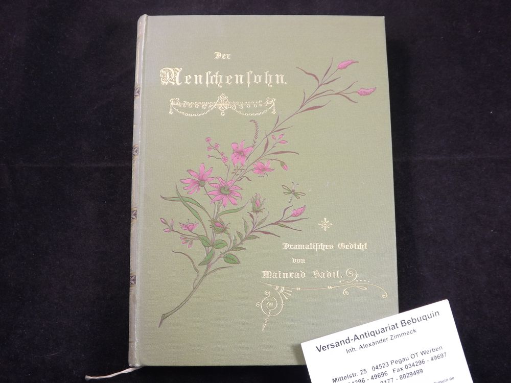 SADIL, Meinrad: Der Menschensohn. Dramatisches Gedicht. Wien (Stift Schotten), 1897. 277 S. ill. OLn. feines Ex. EA des Erstlingswerks Kosch III, 2362. Meinrad Sadil OSB (* 30. Juli 1864 in Nebes (Nedvezí), Mähren; † 5. März 1943 in Wernstein am Inn; eigentlich Franz Richard Sadil) war ein österreichischer römisch-katholischer Schriftsteller und Schulmann. (Wikipedia)