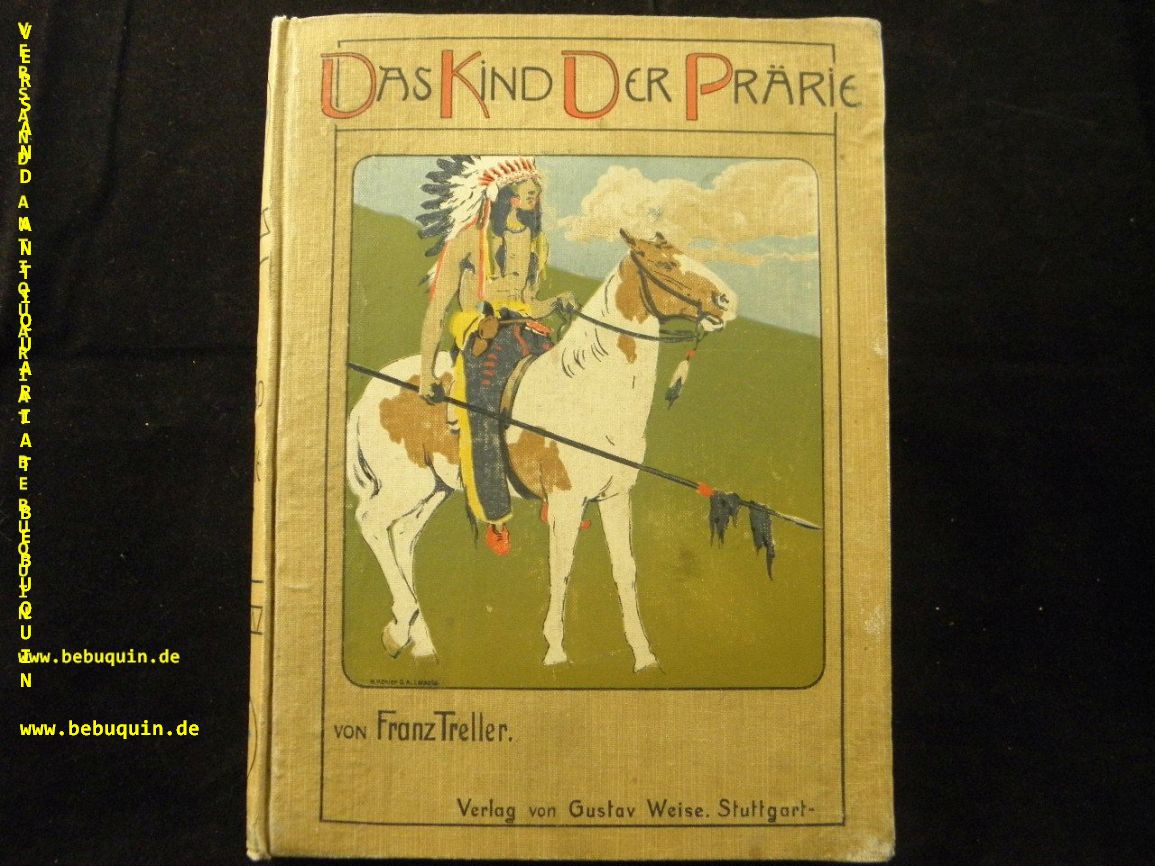 TRELLER, Franz: Das Kind der Prärie. Leipzig (Weise), (1901). 195 (4) S. mit 4 Bildern in Farbendruck. farb. ill. OLn. kaum gebräunt. seltene EA. Klotz 7484/20.