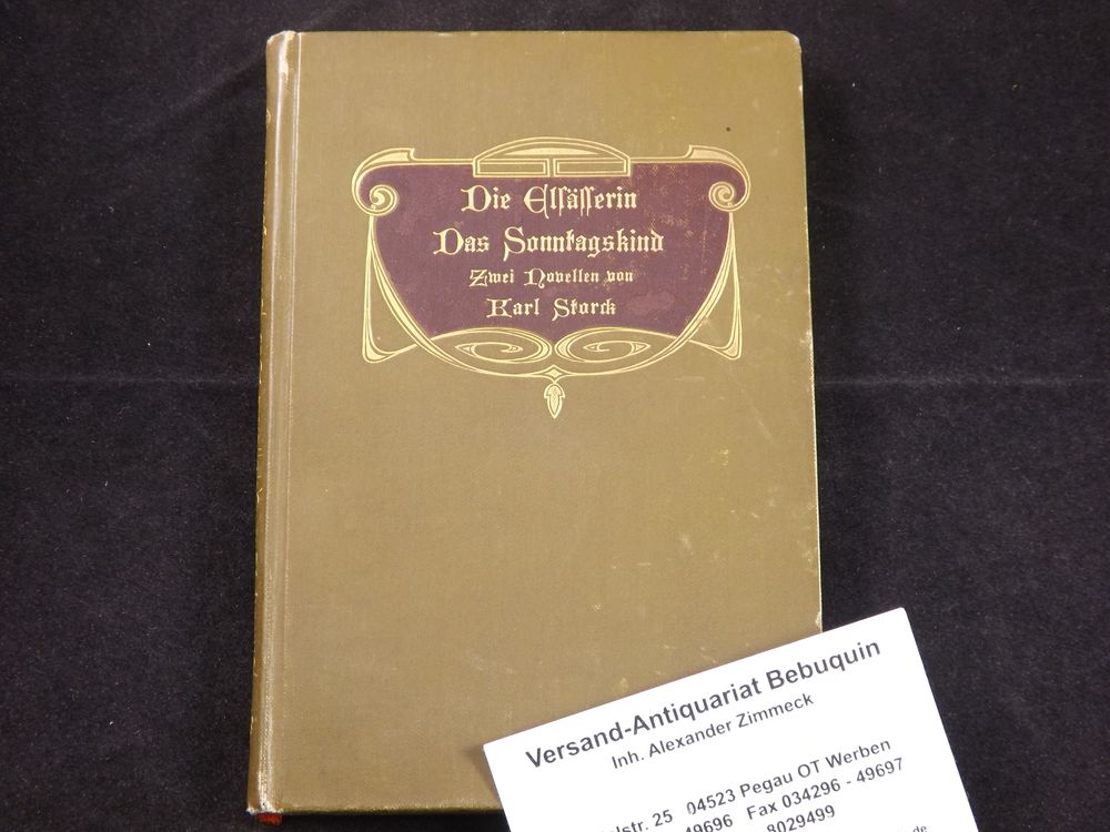 STORCK, Karl: Die Elsässerin. Das Sonntagskind. Zwei Novellen. Stuttgart (Muth), (1896) kl. 8. 144 S. mit goldenen Blumenvorsätzen. OLn. mit Jugendstil-Goldprägung. recht seltene EA des Erstlingswerks Kosch XX, 394.