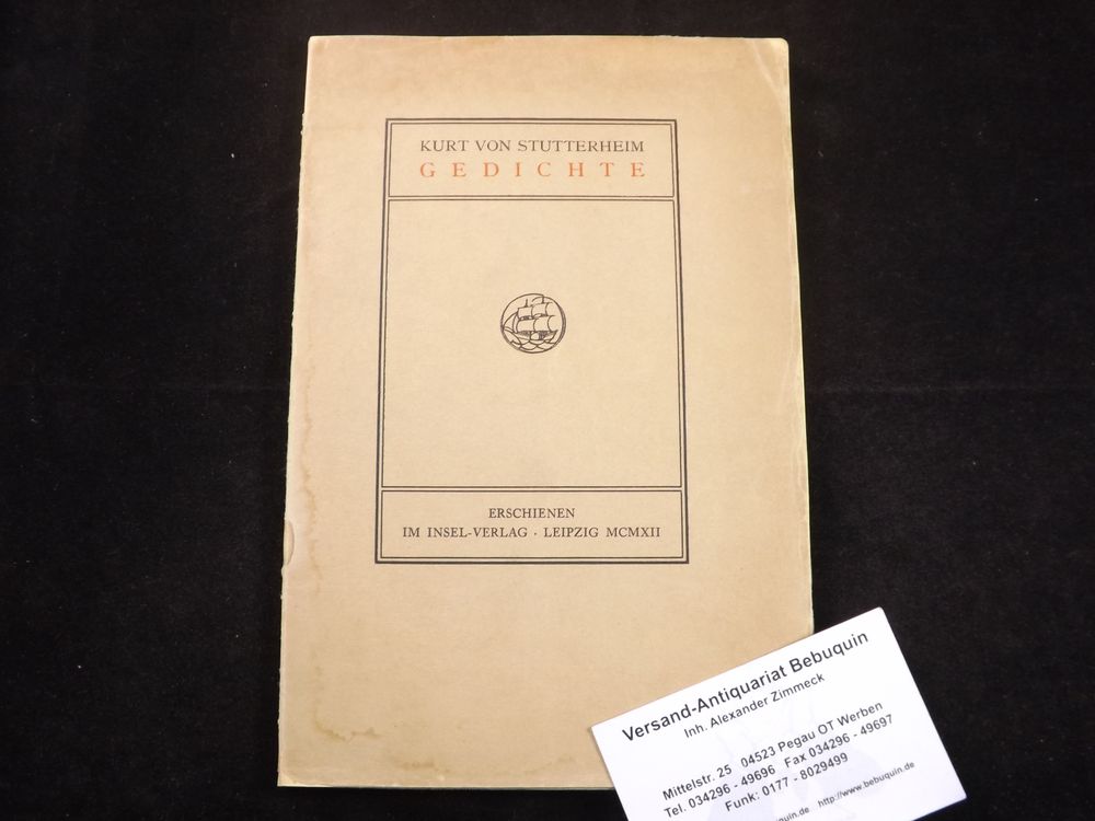 STUTTERHEIM, Kurt von: Gedichte. Leipzig (Insel), 1912. 40 S. 1 Bl. OKart. leichter Feuchtigkeitsrand. 1 von 500 Ex. der EA des Erstlings Sarkowski 1695.