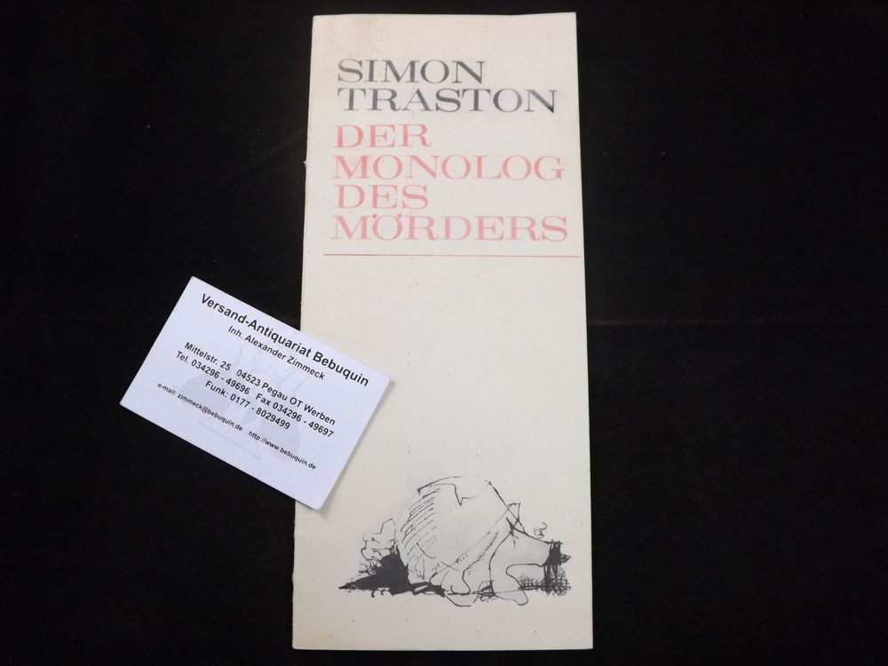 TRASTON, Simon: Der Monolog des Mörders. Enzberg (Fred Marell), 1962. Gr. 8°. 15 (1) S. mit 2 ganzseitigen Grafiken von Günnter Seidel. ill. OKart. Nr. 128 von 200 nummerierten Ex. der EA des Erstlings mit einer eigenhändigen, voll signierten und datierten Verfasserwidmung am Druckvermerk.