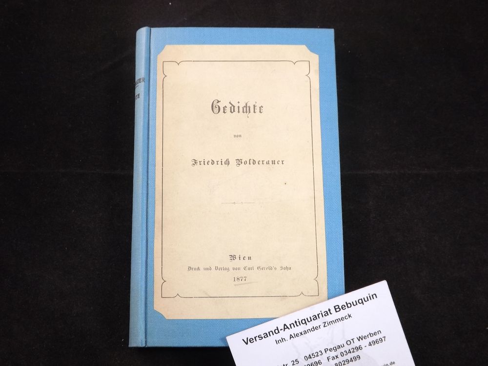 VOLDERAUER, Friedrich: Gedichte. Wien (Gerold), 1877. kl. 8°. 143 S. neues Ln. mit aufgesetztem ODeckel. EA der ersten Veröffentlichung Kosch IV, 3141.