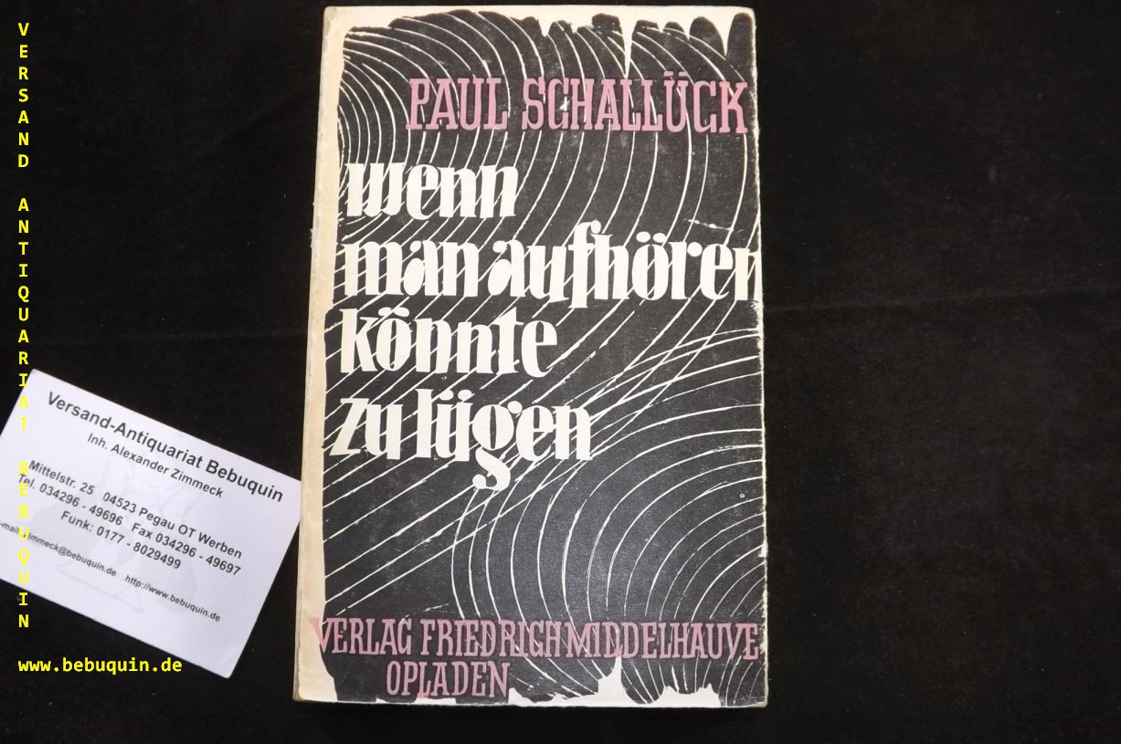 SCHALLÜCK, Paul: Wenn man aufhören könnte zu lügen. Opladen (Middelhauve), 1951. 270 (2) S. ill. OKart. NaT. EA des Erstlings WG² 1.