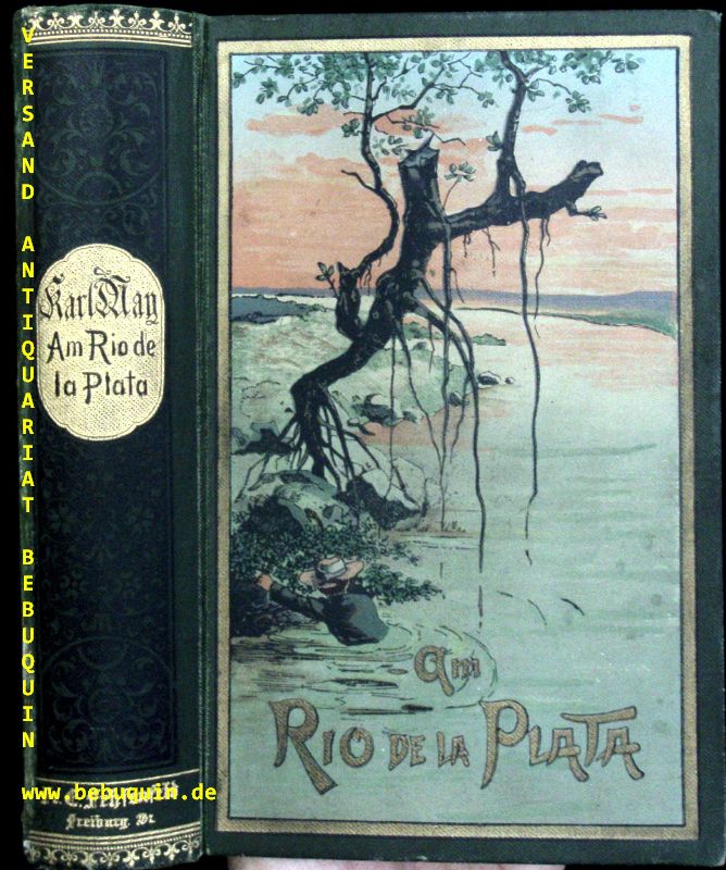 MAY, Karl: Am Rio de la Plata. Reiseerzählungen. 31.– 35. Tsd. Freiburg (Fehsenfeld), (1904). 676 S. ill. OLn. (DB 62). Kanten etwas nachgeleimtt, insgesamt schönes Ex. mit farbstarkem Deckel und glänzendem Rückengold. = Gesammelte Reiseerzählungen, Bd. XII. Seltene Ausgabe. Plaul 253.6