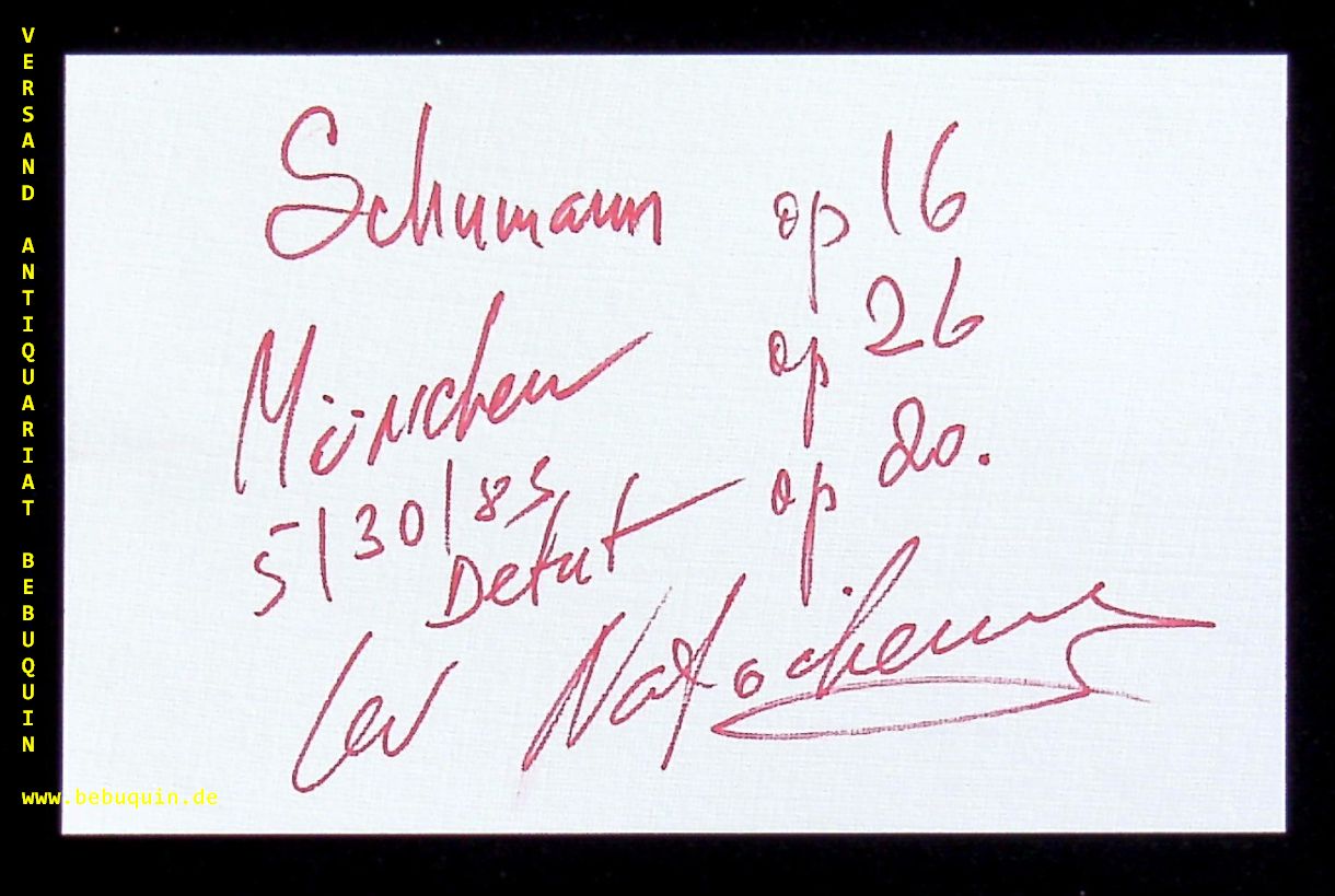 NATOCHENNY, Lev (Pianist): eigenhändig mit Rotstift signierte und datierte Autogrammkarte. München (Philharmonie), 30.5.1983. 8 x 12,5 cm. Karteikarte. Lev Natochenny (* 26. Januar 1950 in Moskau) ist ein russisch-amerikanischer Pianist und Klavierpädagoge. (Wikipedia)
