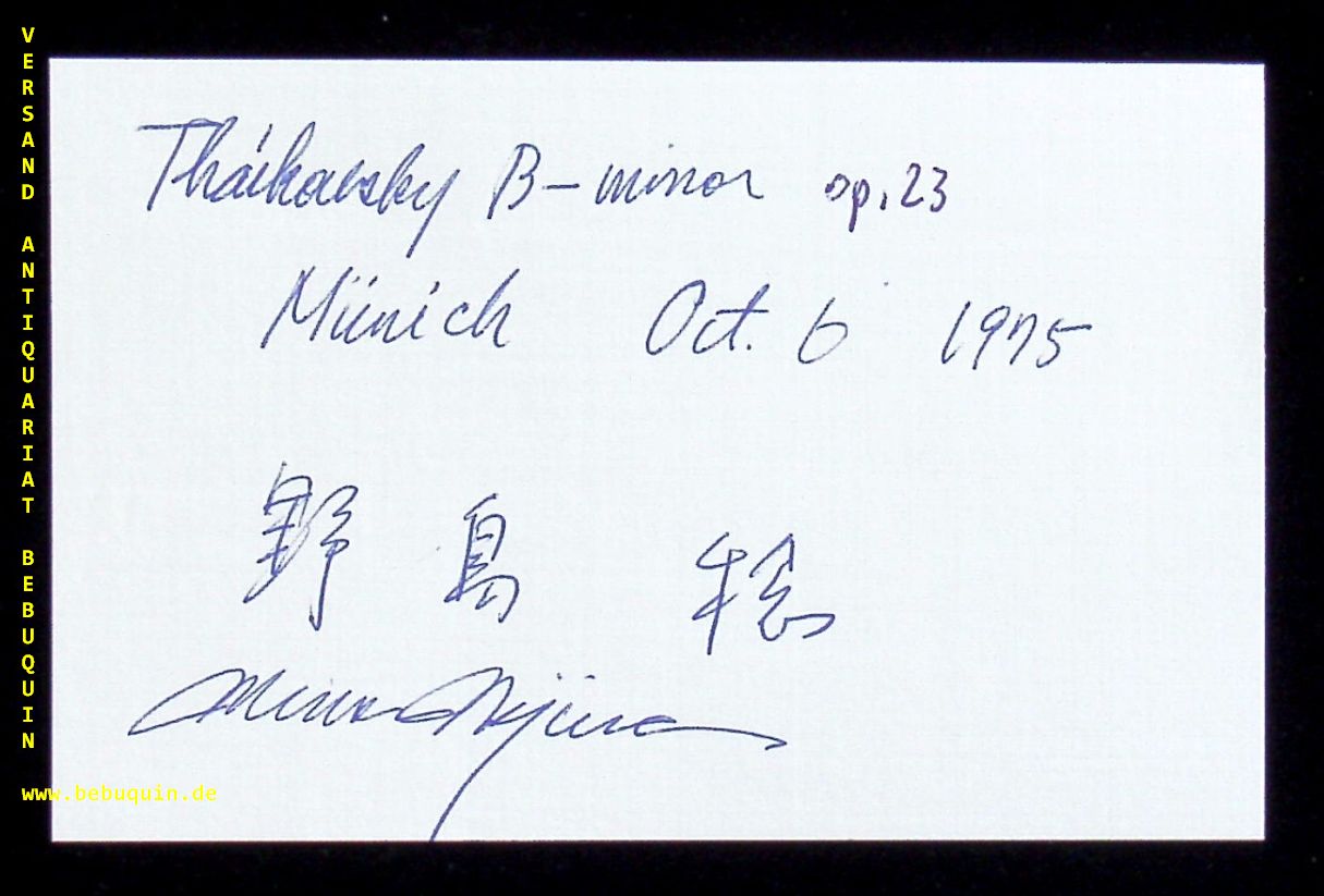 NOJIMA, Minoru (Pianistin): eigenhändig zweisprachig signierte und datierte Autogrammkarte. München, 6.10.1975. 8 x 12,5 cm. Karteikarte. Minoru Nojima (born May 23, 1945 in Yokosuka, Kanagawa prefecture) is a Japanese classical pianist. (Wikipedia)