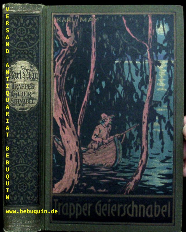 MAY, Karl: Trapper Geierschnabel. Hrsg. von E.A. Schmid und Franz Kandolf. 56.– 75. Tsd. Radebeul (Kartl May), (1939). 494 (2) S. mit Frontispiz. farb. ill. OLn. Rücken leicht berieben, Ex libris, gutes Ex. = Gesammelte Werke, Bd. 54. letzte Ausgabe dieses Titels. Hermesmeier / Schmatz GW 54.4.