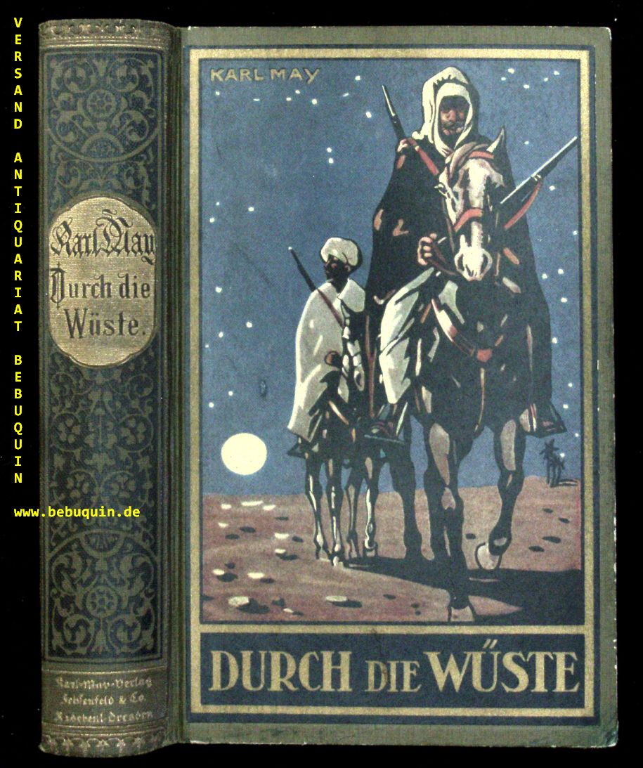 MAY, Karl: Durch die Wüste. Reiseerzählung. 218.– 231. Tsd. = 29. Aufl. Volksausgabe. Radebeul (Karl May), (1932). 634 (2) S. farb. ill. OHLn. NaV, farbstarker Einband, goldener Rücken. = Gesammelte Werke, Bd. 1. Hermesmeier/Schmatz GW 1.30. – Vgl. Klotz 4503/435 (die 29. Aufl. nicht aufgeführt).