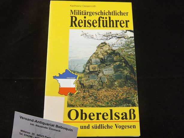 ELSASS.– DEISENROTH, Karlheinz: Oberelsaß und südliche Vogesen. Militärgeschichtlicher Reiseführer. Hamburg (Mittler), 2000. 206 (2) S. mit Abb. OKart. Ordnungsgemäß aus Bundeswehrbeständen ausgesondertes Bibliotheksexemplar (Stempel, Rückenschild). EA.