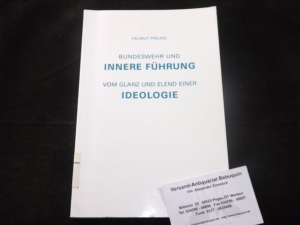 PREUSS, Helmut: Bundeswehr und Innere Führung. Vom Glanz und Elend einer Ideologie Siegburg, 1986. Gr. 8°. VIII, 259 S. OKart. Ordnungsgemäß aus Bundeswehrbeständen ausgesondertes Bibliotheksexemplar (Rückenschild, Stempel). sehr interessante, schwer zu findende und kritische EA.