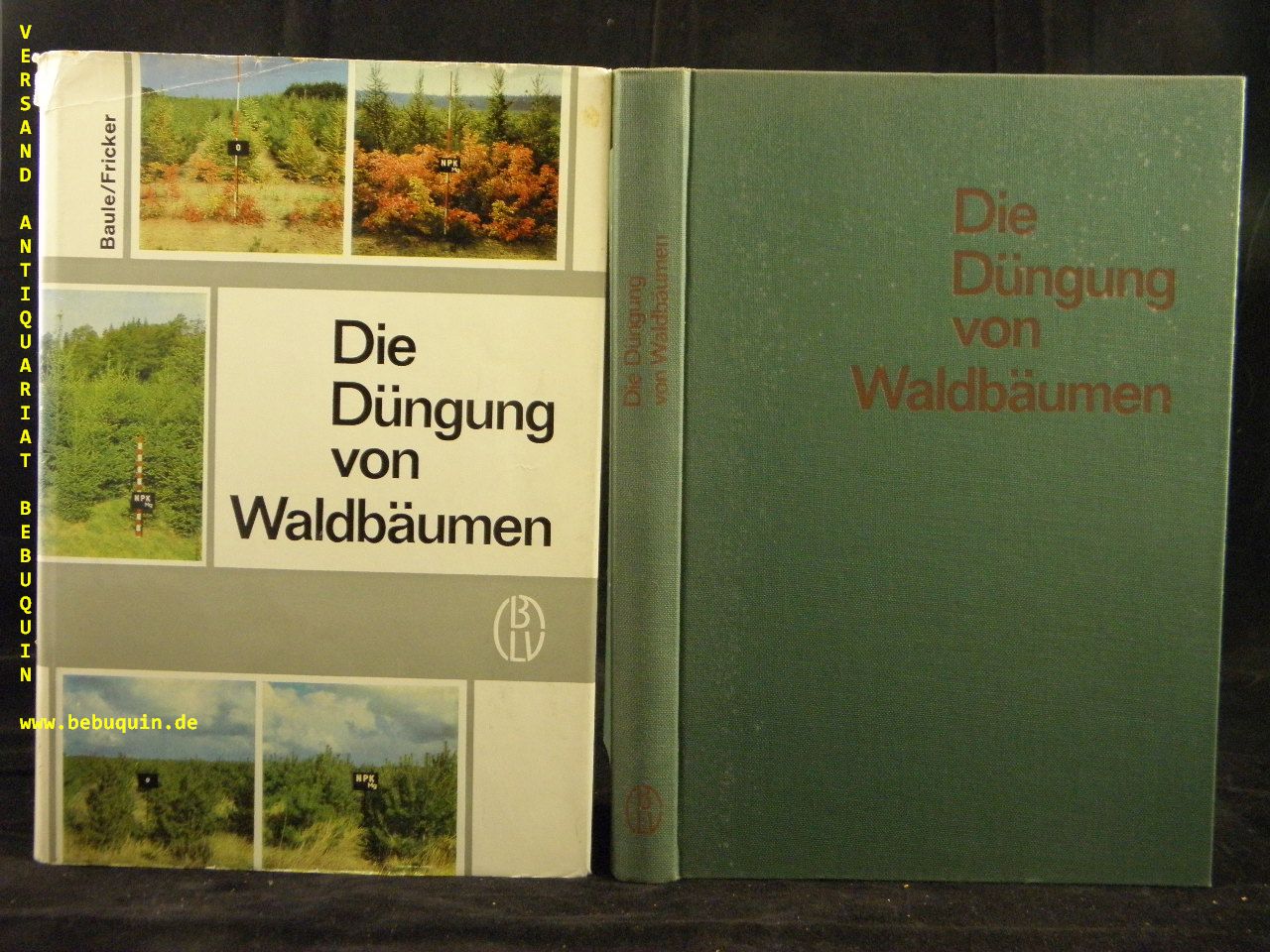 LANDWIRTSCHAFT.– BAULE, Hubert + FRICKER, Claude: Die Düngung von Waldbäumen. München (BLV), 1967. Gr. 8°. XVI, 260 S. mit 112 Abb. und 45 Farbbildern auf Tafeln. OLn mit OUmschl. Einband leicht angeschmutzt. EA mit einer eigenhändigen voll signierten und datierten Verfasserwidmung auf Vorsatz.