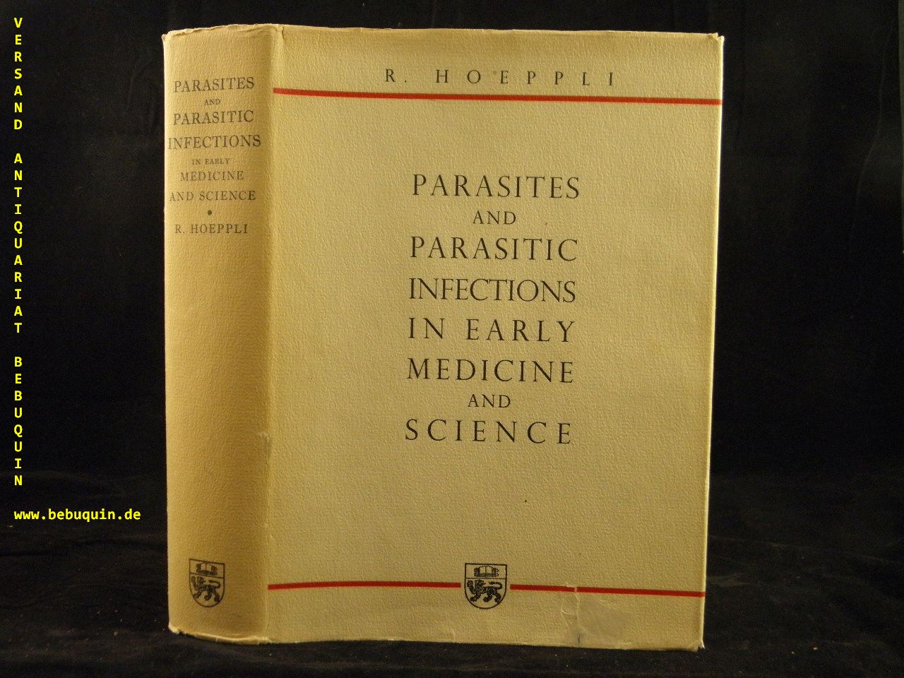 PARASITOLOGIE.– HOEPPLI, R.: Parasites and parasitic Infections in early Medicine and Scene. Singapore (Malaya), 1959. 4°. XIV, 526 S. + 23 Bildtafeln. OLdr mit OUmschl. sehr gutes Ex. seltene EA des Standardwerkes.