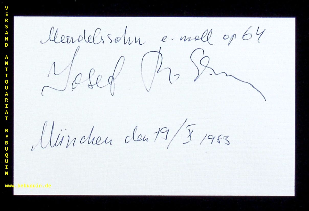 RISSIN, Josef (Violinist): eigenhändig signierte und datierte Autogrammkarte. München (Herkulessaal), 19.10.1983. 8 x 12,5 cm. Karteikarte. Josef Rissin (* 1944 in Riga) ist ein Geiger und Professor für Violine an der Hochschule für Musik Karlsruhe. (Wikipedia)