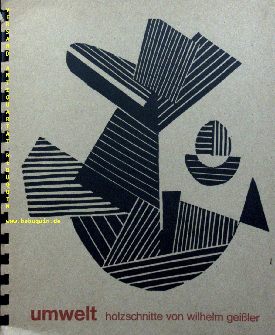 GEISSLER, Wilhelm: Umwelt. Holzschnitte vom Urstock gedruckt. Essen (Woensampresse), 1965. Gr. 8°. 12 Blätter mit 12 Original Holzschnitten von Wilhelm Geißler. ill. OKart in Ringbuchbindung. Kap. gering bestoßen. Nummer 458 von 500 nummerierten Exemplaren der EA.