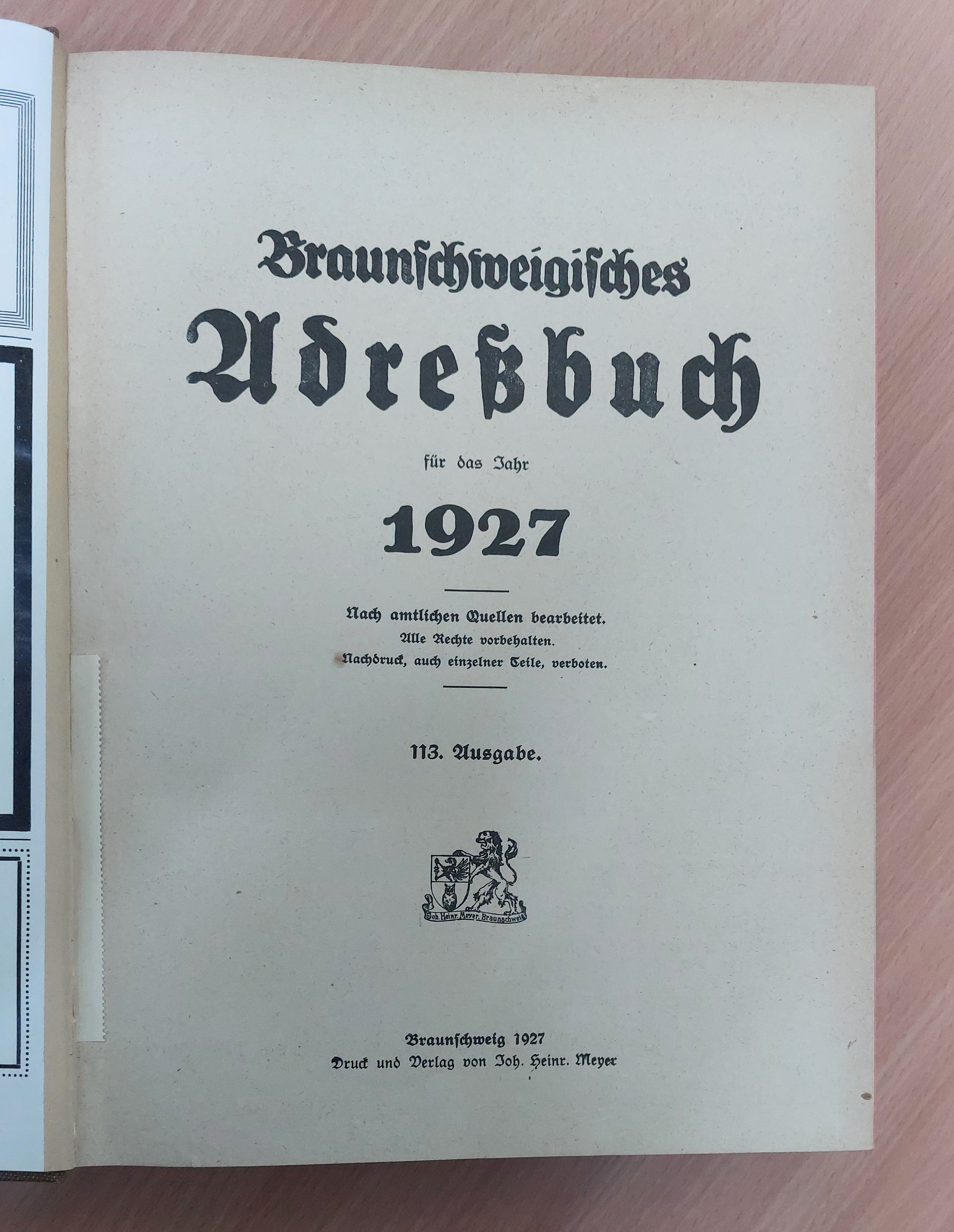 BRAUNSCHWEIGISCHES ADRESSBUCH FÜR DAS JAHR 1929.–