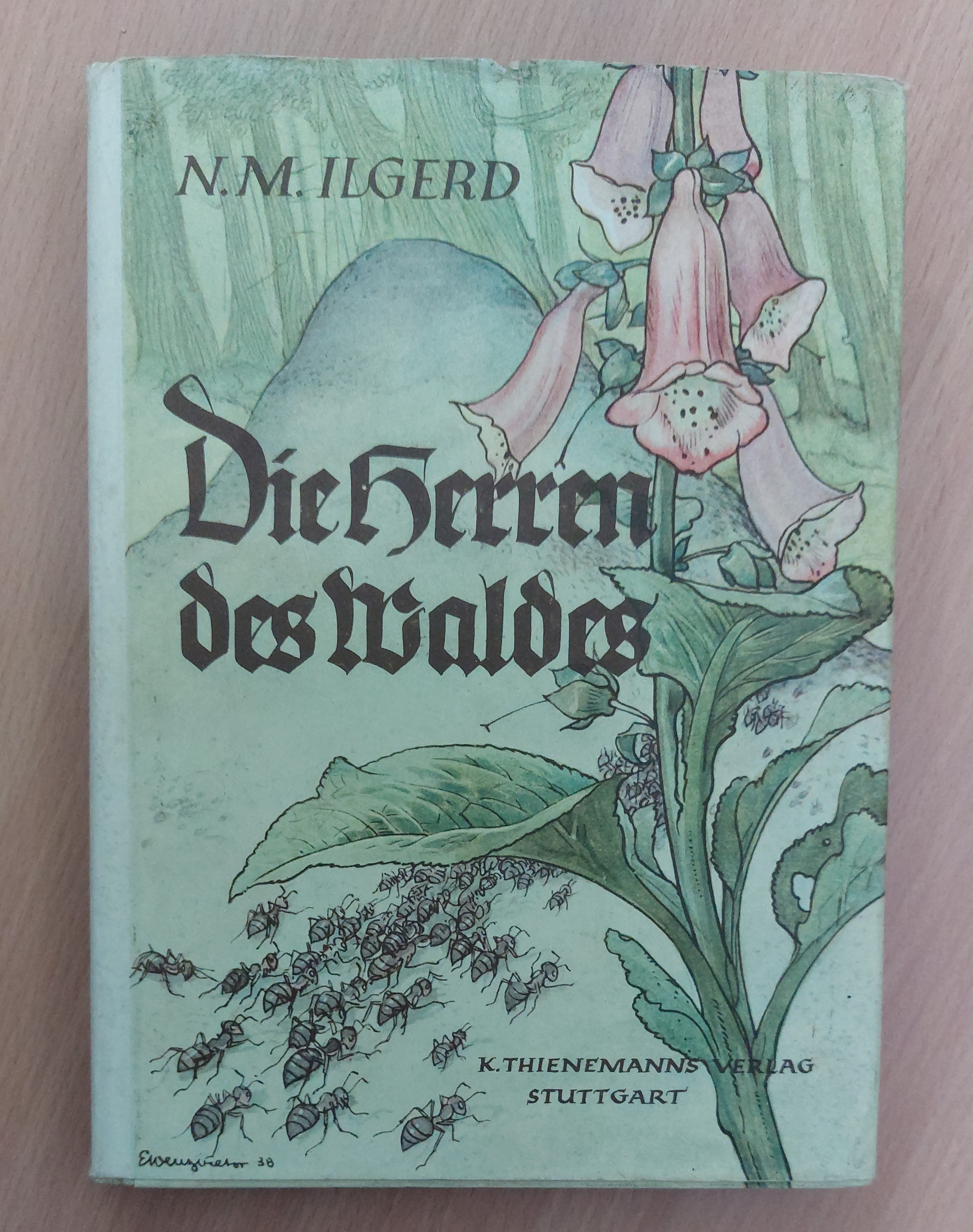 WENZ-VIETOR.– ILGERD, N.M. (d.i. Max Dingler): Die Herren des Waldes. Eine Ameisengeschichte. 16.– 20. Tsd. Stuttgart (Thienemann), (1938). Gr. 8°. 128 S. + 4 farb. Bildtafeln von Rudolf Sieck. farb ill. OHLn mit OUmschl . von Else Wenz-Vietor. vereinzelt braunfleckig, gutes Ex. einzige Auflage in dieser Ausstattung. (Schloss 107.)