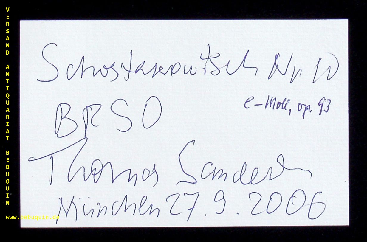 SANDERLING, Thomas (Dirigent): eigenhändig signierte und datierte Autogrammkarte. München (Herkulessaal), 27.9.2006. Karteikarte. Thomas Sanderling (* 2. Oktober 1942 in Nowosibirsk, Russische SFSR, Sowjetunion) ist ein deutscher Dirigent, seit 2009 mit russischer Staatsbürgerschaft. (Wikipedia)
