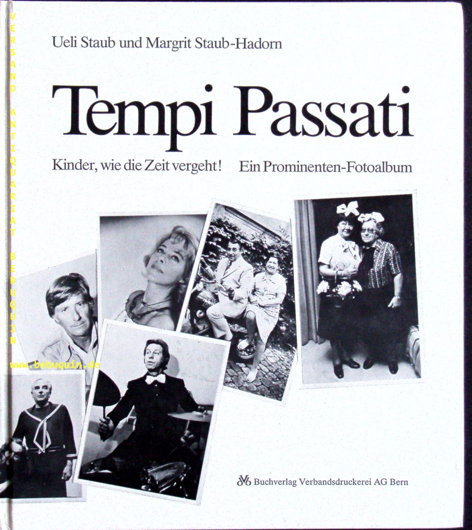 STAUB, Ueli + STAUB-HADORN, Margrit: Tempi Passati. Kinder, wie die Zeit vergeht! Ein Prominenten-Fotoalbum. Bern (Verbandsdruckerei), 1978. Gr. 8°. 103 S. mit zahlr. Bildern. ill. OPb. gutes Ex. EA mit den Signaturen der Verfasser auf Titelseite.