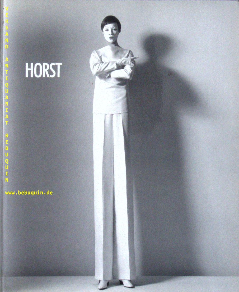 HORST.– LAWFORD, Valentine: Horst. Ausstellungskatalog. Bremen, Milano (Idea Books), 1987. 4°. 78 S. mit zahlr. teils farb. Bildtafeln. ill. OKart. feines Ex. EA mit einer eigenhändigen datierten Widmung von Horst auf Titelseite. „Mode ist ein Ausdruck seiner Zeit. Eleganz ist etwas anderes“, soll Horst P. Horst gesagt haben. Nach diesem flüchtigen Anderen hat er sein Leben lang gesucht. Der aus Weißenfels an der Saale stammende Fotograf ging 1930 nach einem Architekturstudium nach Paris, um bei Le Corbusier zu arbeiten. Dort begegnete er dem „Vogue“-Fotografen George Hoyningen-Huene, der ihn hinter die Kamera brachte. Wo er blieb. Er wurde einer der wichtigsten Modefotografen des letzten Jahrhunderts. (Wikipedia)