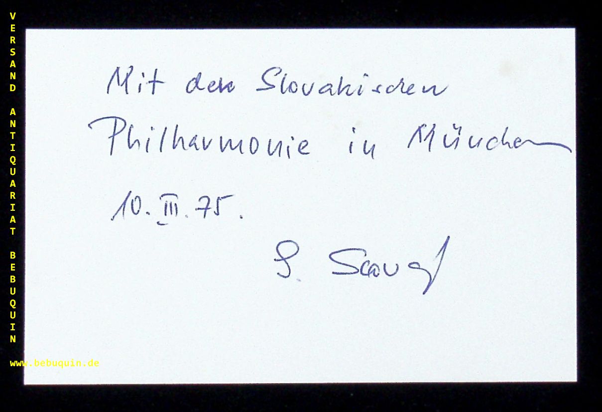 SLOVAK, Ladislav (Dirigent): eigenhändig signierte und datierte Autogrammkarte. München (Philharmonie), 10.3.1975. 8 x 12,5 cm. Karteikarte. Ladislav Slovák (10 September 1919, Velké Leváre – 22 July 1999, Bratislava) was a Slovak conductor. (Wikipedia)