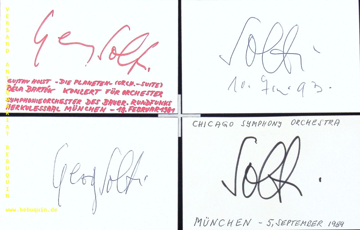 SOLTI, Sir Georg (Dirigent): 12 eigenhändig signierte und datierte Autogrammkarte. München, 1968 – 1994. 8 x 12,5 cm. 12 Karteikarten. . Sir Georg Solti (* 21. Oktober 1912 in Budapest als György Stern; † 5. September 1997 in Antibes, Frankreich) war ein ungarisch-britischer Dirigent jüdischer Abstammung. (Wikipedia)