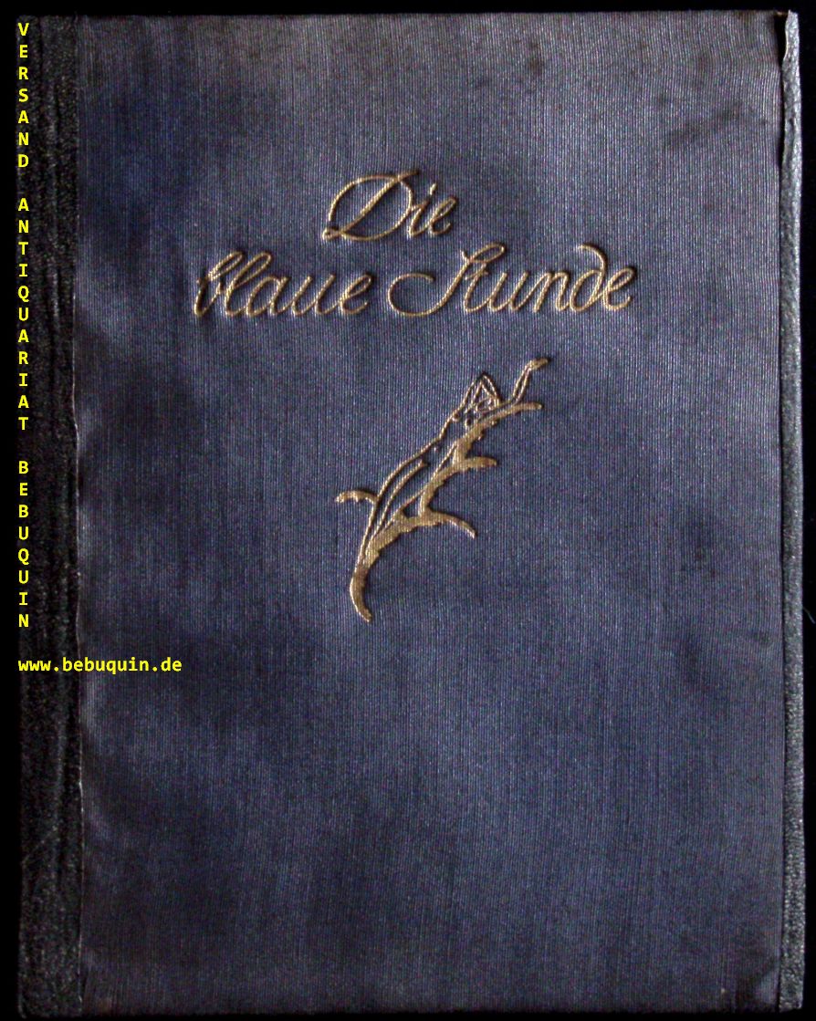 GOETZ, Adolf: Die Blaue Stunde. Hamburg (Hanf), ca 1920. 4°. 64 S. mit 3 jeweils von Ludwig Kainer eigenhändig signierten Originallithographien. OSeide mit Goldprägung und neuem Lederrücken. innen feines Ex. Nr. 27 von 80 Ex. der EA (Gesamtauflage 220 Ex.) Von Adolf Goetz auf dem Titelblatt signiert.