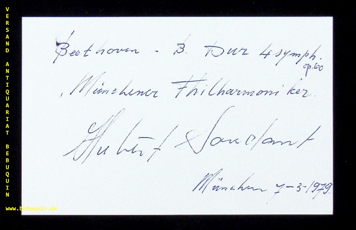 SOUDANT, Hubert (Dirigent): eigenhändig signierte und datierte Autogrammkarte. München (Philharmonie), 7.3.1979. 8 x 12,5 cm. Karteikarte. Hubert Soudant (* 16. März 1946 in Maastricht) ist ein niederländischer Dirigent. (Wikipedia)
