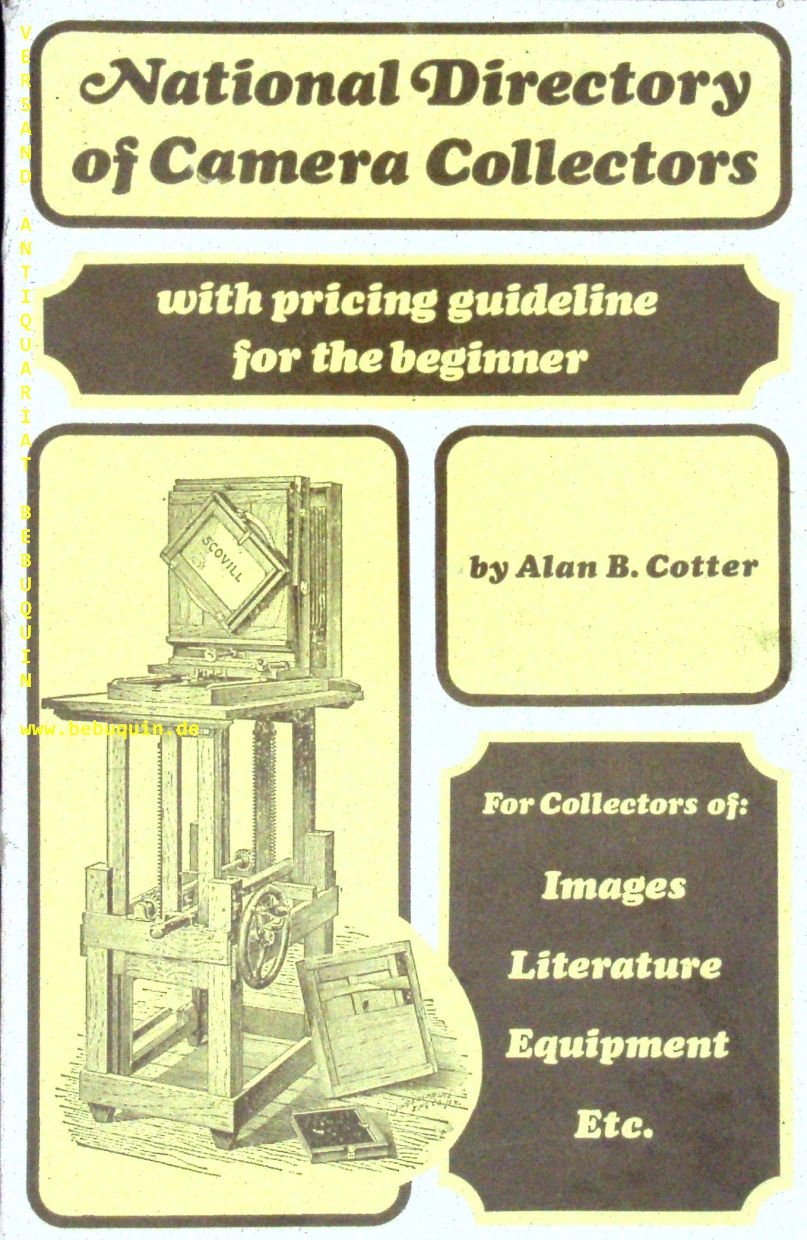 TECHNIK.– COTTER, Alan B.: National Directory of Camera Collectors. 3. Aufl. Santa Barbara, 1975. 109, 12 S. mit zahlr. Bildtafeln. ill. OKart. gutes Ex.