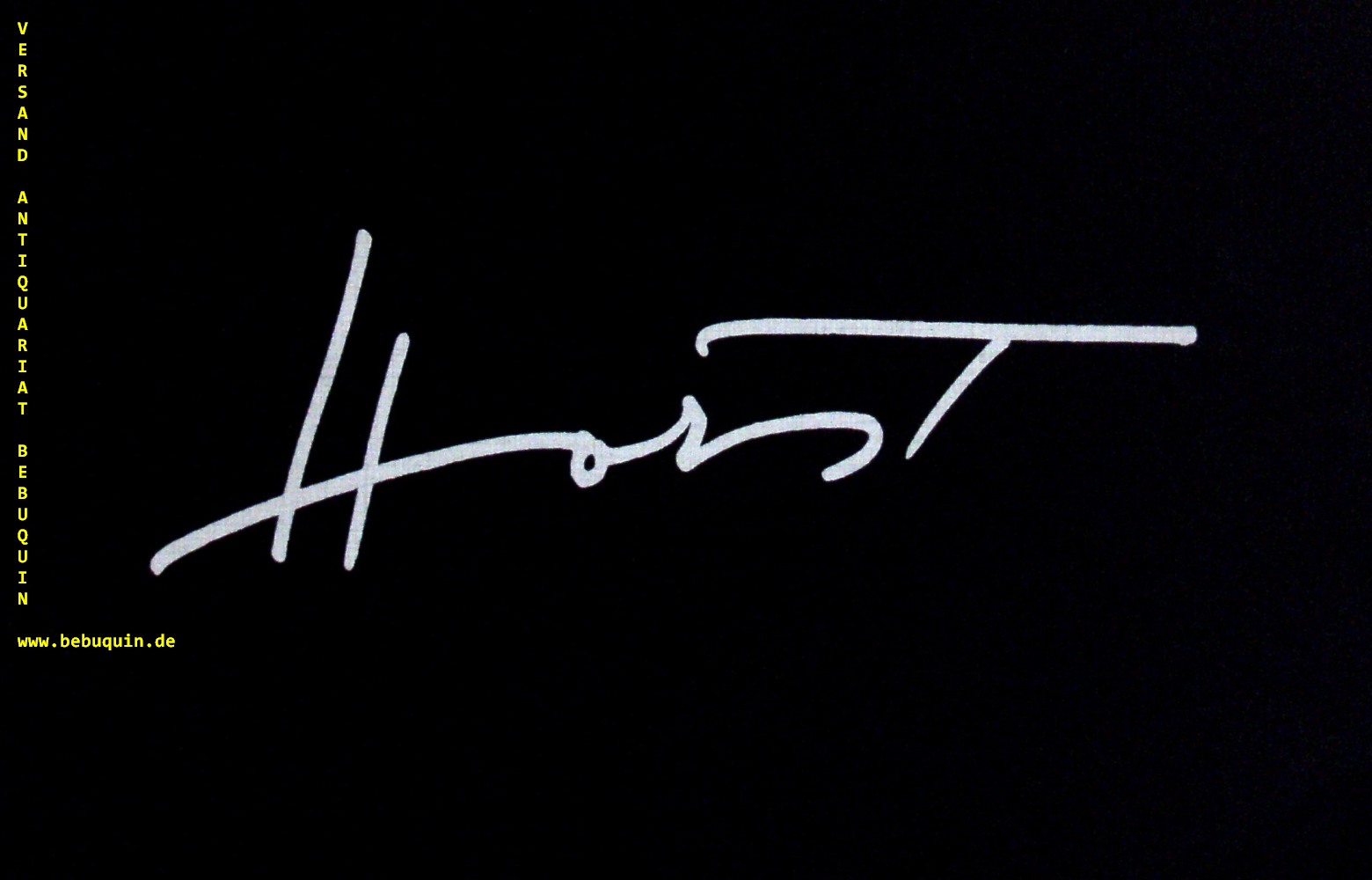 HORST.– EWING, William A.: (Hrsg.) Horst. Exhibition and Catalog. New York (International Center of Photography), 1984, Gr. 4°. 24 S. mit beeindruckenden Bildtafeln. OKart. gutes Ex. EA des seltenen Katalogs.