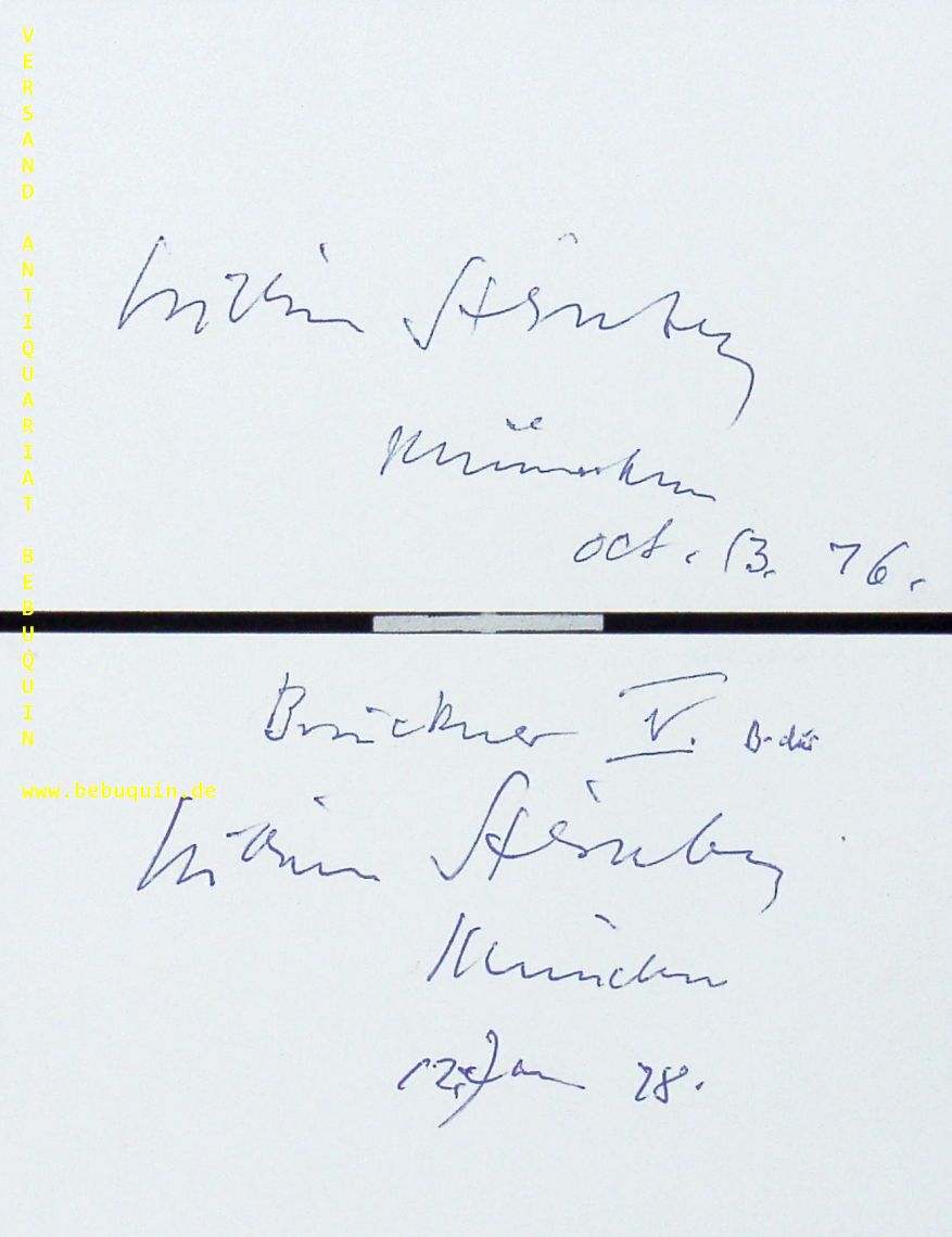 STEINBERG, William (Dirigent): 2 eigenhändig signierte Autogrammkarten (davon eine vier Monate vor seinem Tod). München (Kongresssaal), 13.10.1976 + 12.1.1978. 8 x 12,5 cm. 2 Karteikarten. William Steinberg (geboren 1. August 1899 in Köln; gestorben 16. Mai 1978 in New York City; geboren als Hans Wilhelm Steinberg) war ein amerikanischer Dirigent deutscher Herkunft. (Wikipedia)