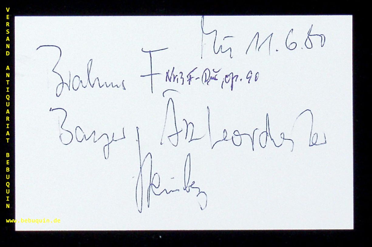 STEINBERG, Reinhard (Dirigent): eigenhändig signierte Autogrammkarte. München (Kongresssaal), 11.6.1980. 8 x 12,5 cm. Karteikarte. Psychiater und Cellist.