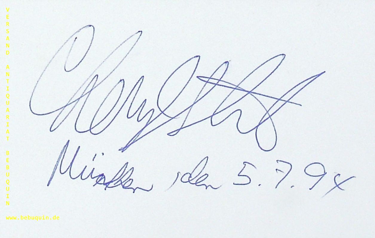 STUDER, Cheryl (Sopran): eigenhändig signierte und datierte Autogrammkarte. München (Philharmonie), 5.7.1994. 8 x 12,5 cm. Karteikarte. Cheryl Studer (* 24. Oktober 1955 in Midland, Michigan) ist eine US-amerikanische Opernsängerin (Sopran). (Wikipedia).